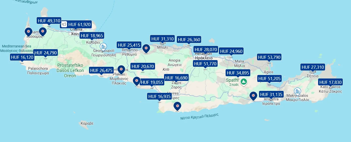 - A főszezonra legalább 2-3 hónappal előre érdemes szállást foglalni, különösen Chania és Elafonissi környékén